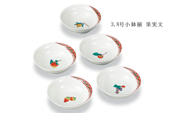 【九谷焼】3.8号小鉢揃 果実文【九谷焼】3.8号小鉢揃 果実文 商品説明 <約360年続く歴史ある、九谷焼の世界> 九谷焼の特徴は、「呉須(ごす)」とよばれる藍青色で線描きし、「五彩」とよばれる、赤・黄・緑・紫・紺青の5色での絵の具を厚く盛り上げて塗る彩法です。